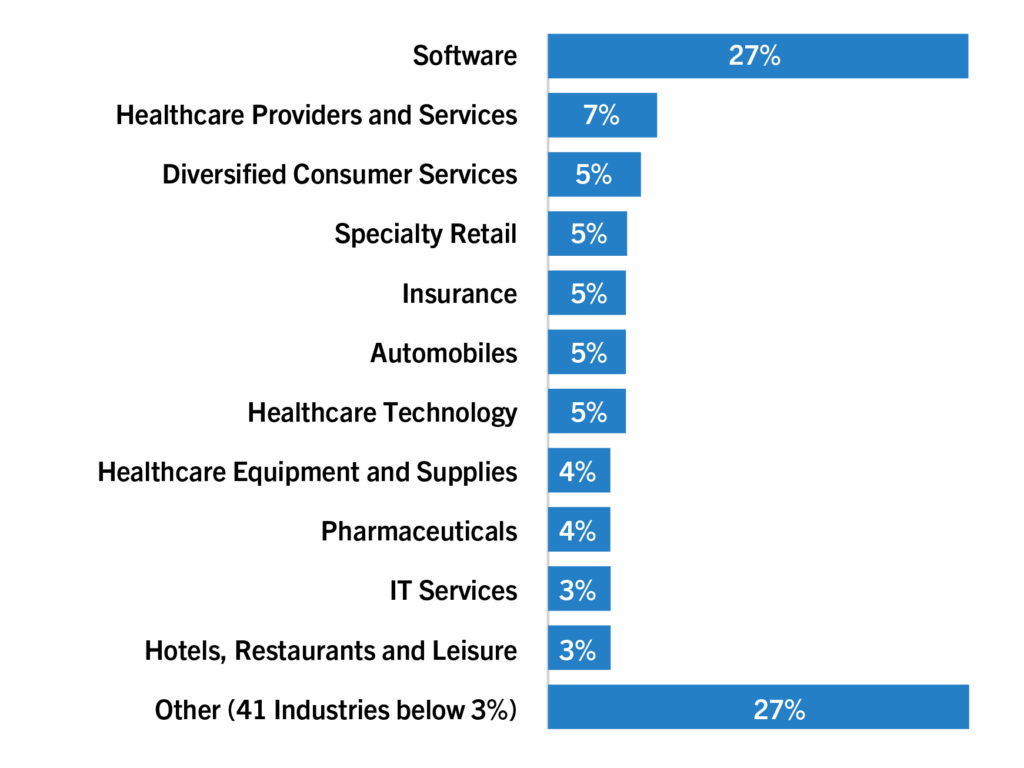 - Based on S&P 2018 industry code. The largest industries represented as a percentage of the portfolio at fair value are labeled. All other industry segments are each below 3%.